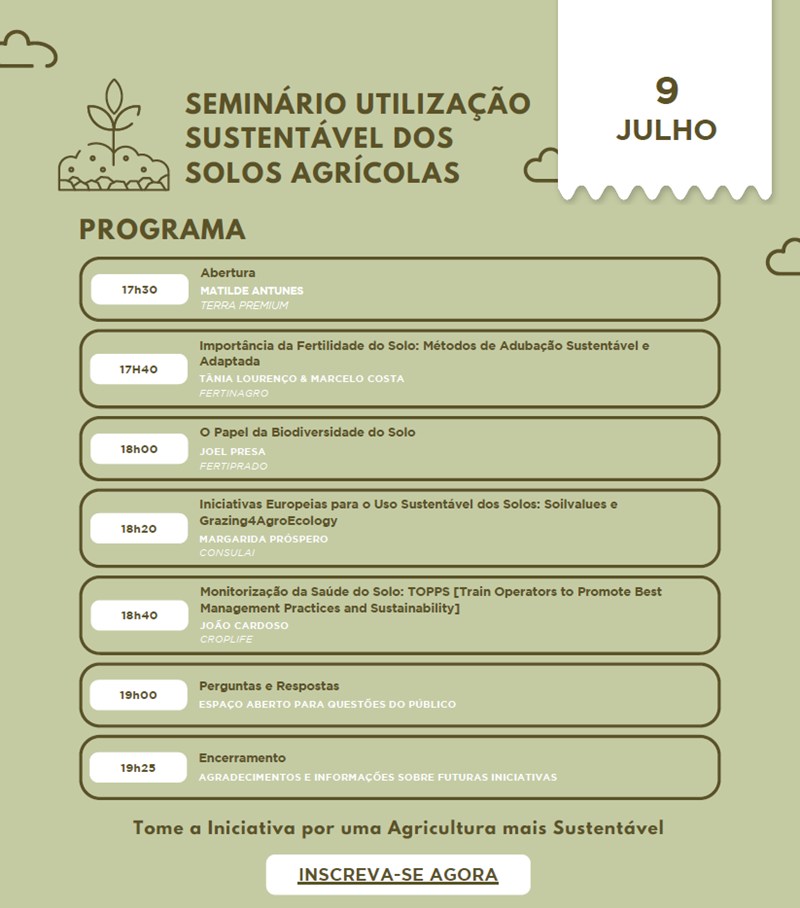 Seminário - Utilização Sustentável de solos agrícolas - 9 de julho