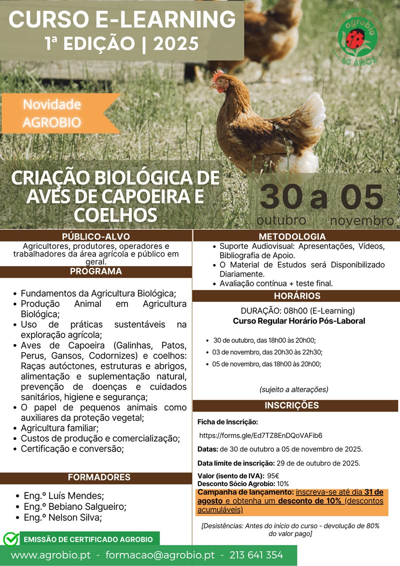 Curso E-Learning de “Criação Biológica de Aves de Capoeira e Coelho” 2025